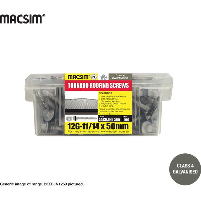 Anti slip head; Shank protection; Registered dual thread design: Fine thread (13tpi) for fixing into metal batten; Coarse thread (11tpi) for fixing to timber; Double Grip to hold roof sheeting; Colorbond